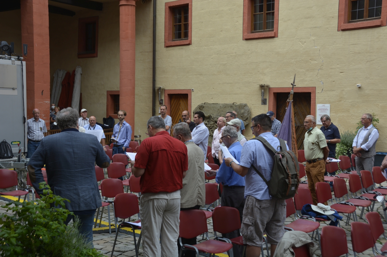 In der – aus heutiger Sicht – relativ heilen Welt des Jahres 1885 beschlossen fünf Chorsänger bei einer Wanderung auf die Friesener Warte die Gründung unserer Gemeinschaft. Damals gab es kein Corona, keinen Klimawandel und auch kein ständig klingelndes Taschentelefon. Doch natürlich hatte auch diese Zeit ihre Sorgen. Die zunehmende Industrialisierung, die geringe Lebenserwartung, die fehlende soziale Absicherung… und sicher auch die ein oder andere keifende Ehefrau zuhause.